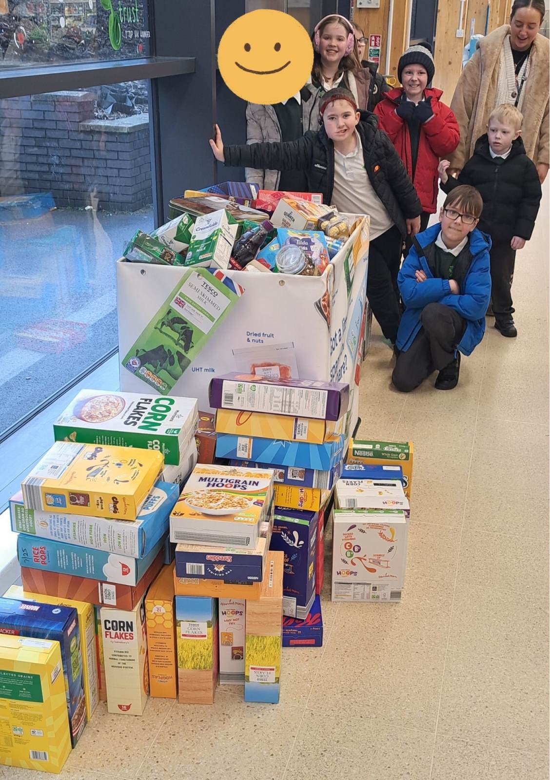 After science week the school council took all the cereal donations to Tesco Hattersley for food donations for the local community.