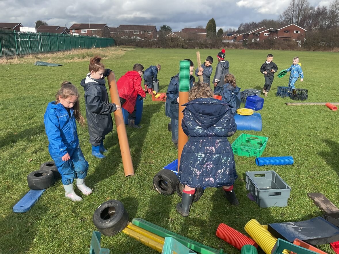Pine class and Aspen class spent yesterday at Outdoor learning doing some loose parts play, building things such as boats, cars, trucks and a factory that makes kitchen appliances! Such great imagination.