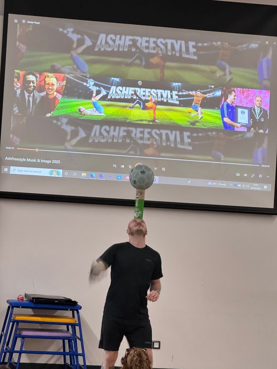 On Monday, we had a special visitor in P.E. Football Freestyler, Ash Randall came in. During the assembly he showed off some of his amazing freestyling skills.